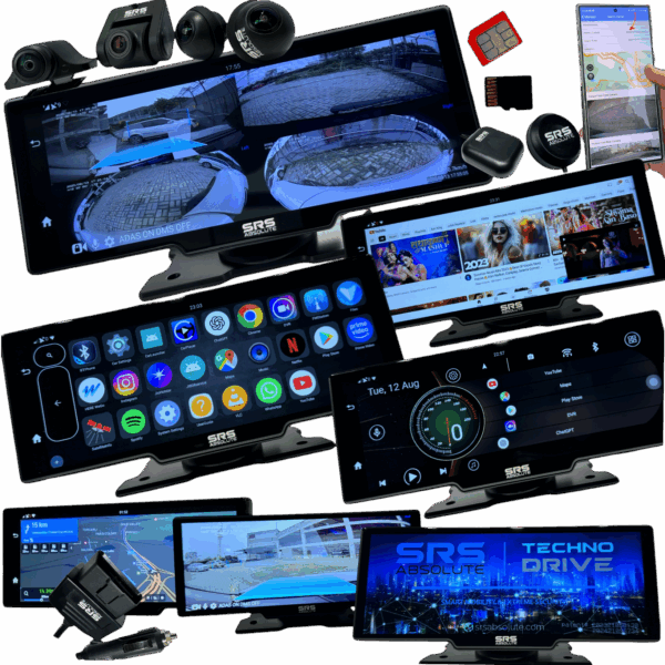 SRSABSOLUTE 4CH 4G Smart 360° Dash Cam| Android| ADAS DMS| 24×7 Remote Audio/Video/GPS Monitor/Call/SOS| BT WIFI HotSpot|Motion/G-Sensor| Maps-Apps-PlayStore MicroSD Support|Steering Control|Rev Park