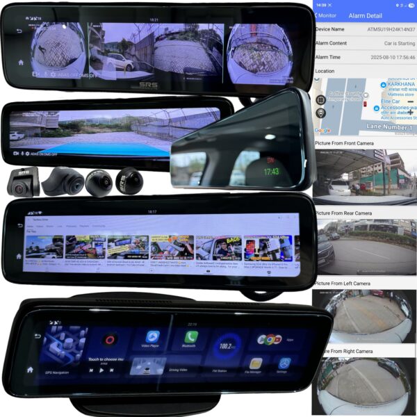 SRSABSOLUTE 12″ All Side 4G DashCam Full Set WiFi MicroSD GPS 24h Live Remote Park Monitor Low Light Night Vision Bluetooth 64-bit Smart Mirror DVR (4 Channel 360° S13Ultra 10.3″ 4G ADAS 2GB+32GB SRS Gen2 Android)