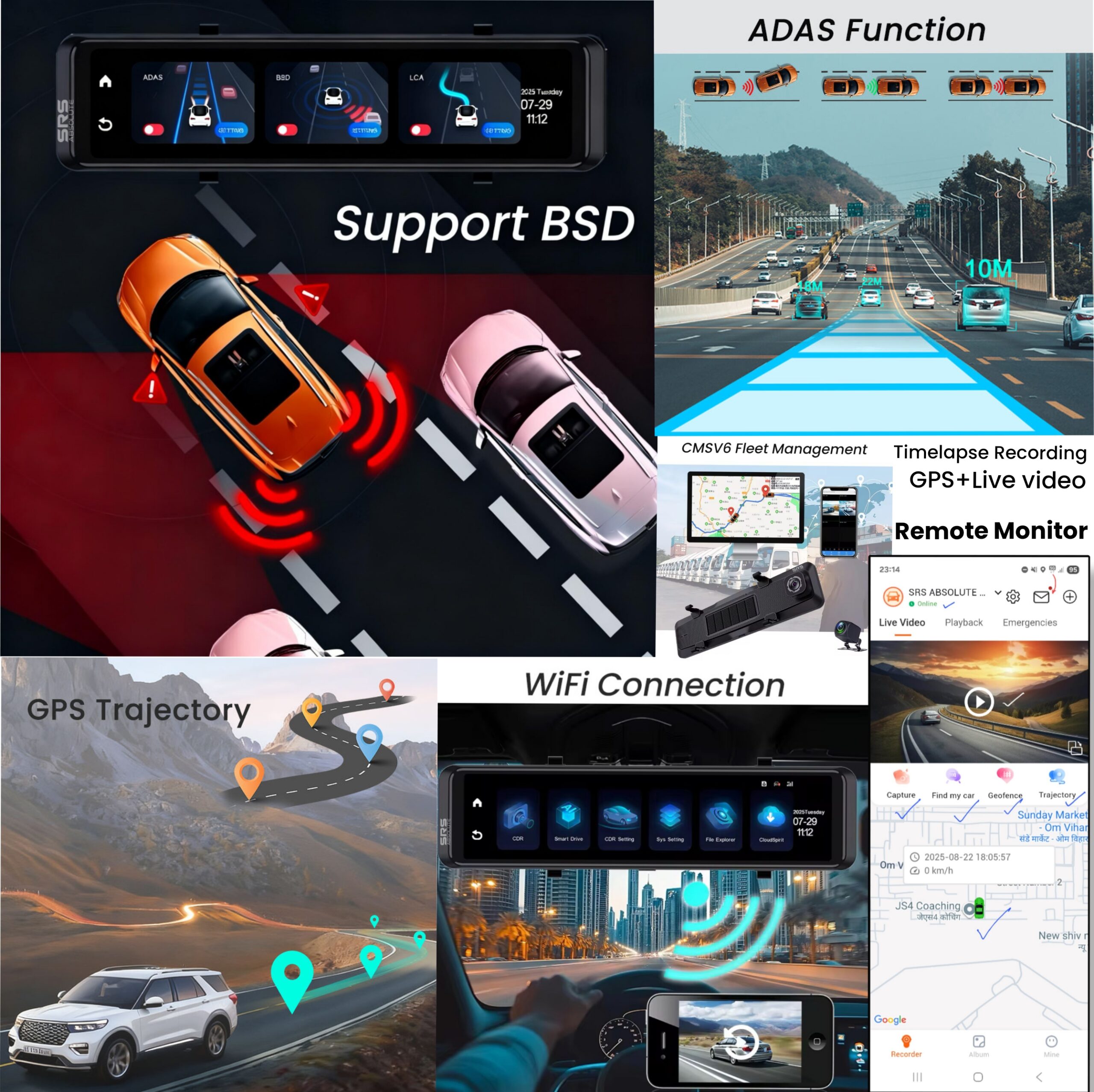 • BSD (Blindspot Detection), Alert, auto record , capture & report