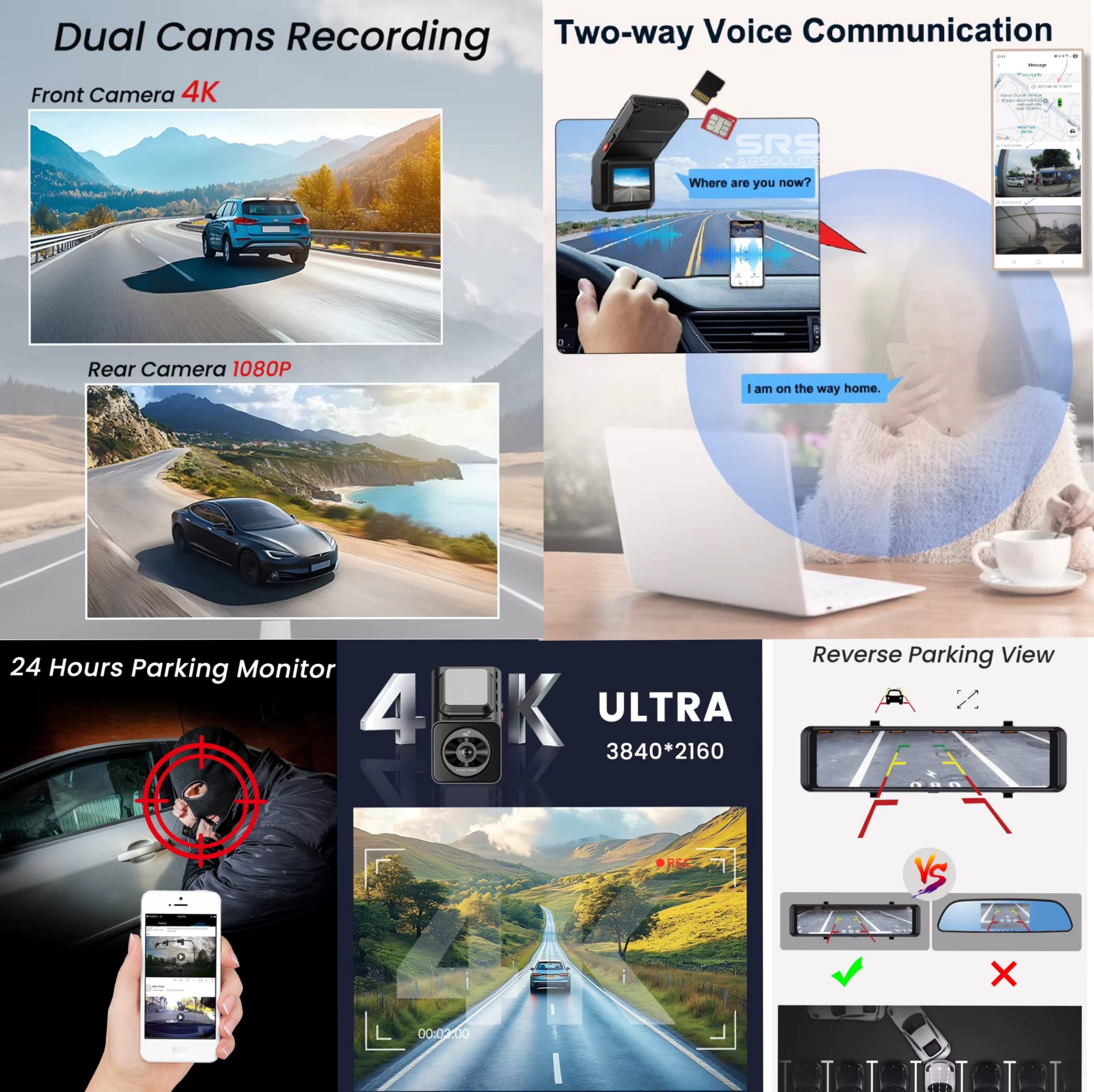 • 4K, 4G, ADAS, BSD Dual Dash Cam with Remote App Control works while driving/standby/parked OFF
