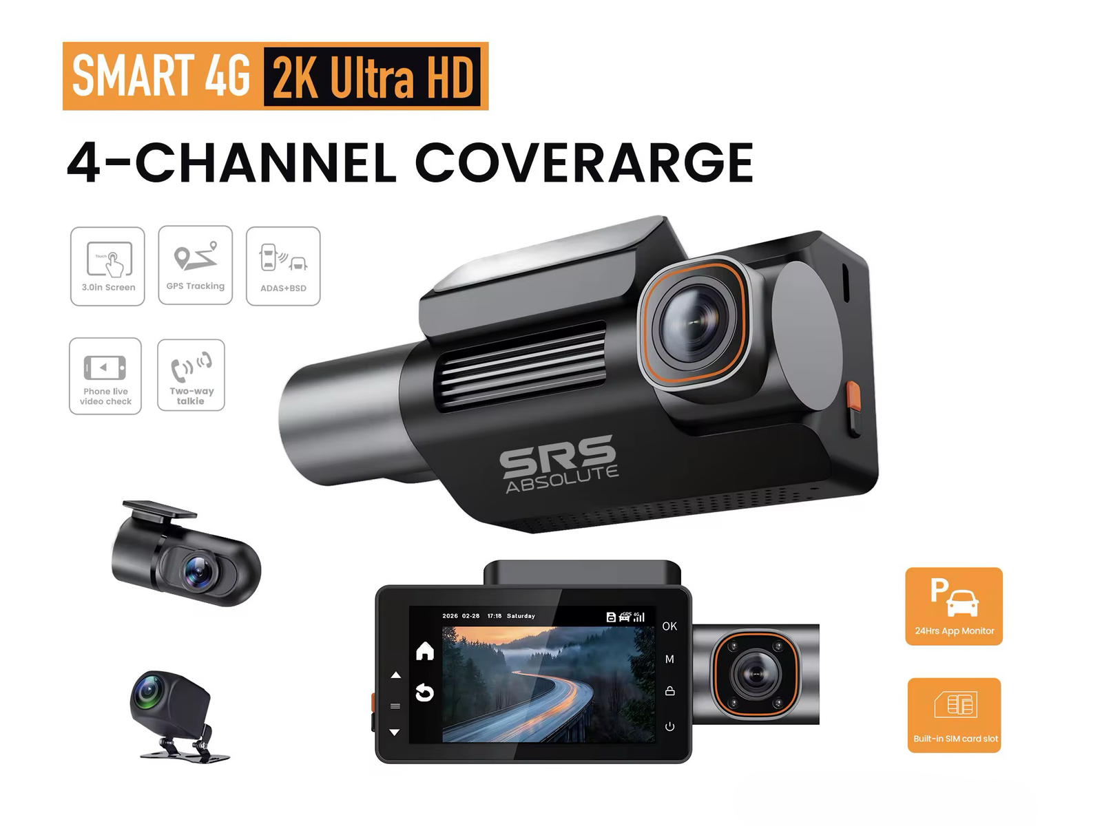 360° 4 Channel 4G Dash Cam : Front/Rear/Inside/side with ADAS BSD & Night vision with 24×7 Gps, Remote Live video, Playback & Remote Calling (lifetime free service) & comprehensive 360° safety & surveillance.