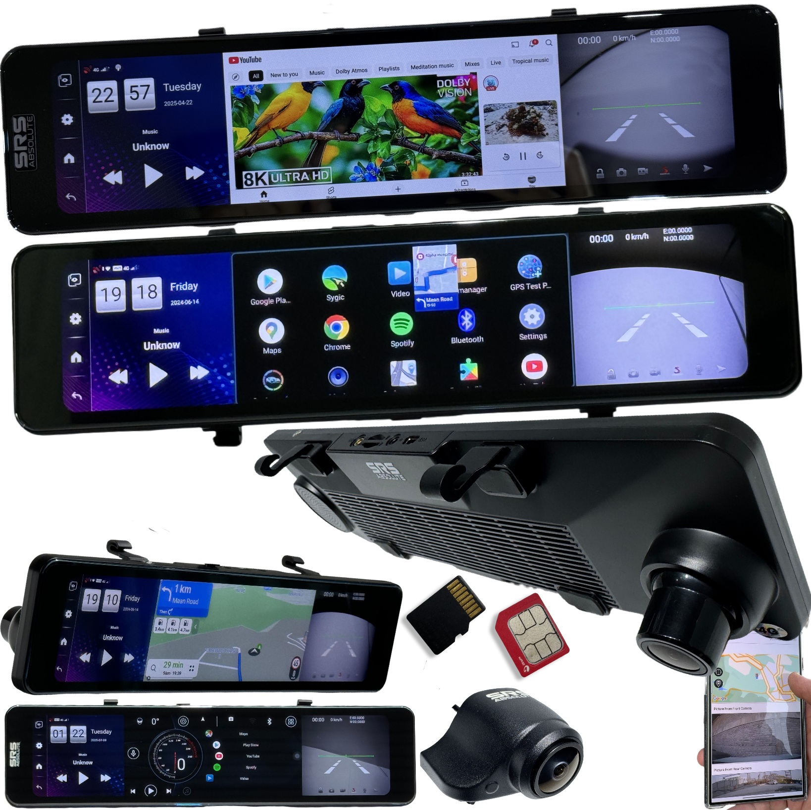 SRSABSOLUTE F/R 4G Dash Cam Android | ADAS | 24×7 Remote Audio-Video Monitor | GPS Tracking | 256GB MicroSD support| PlayStore | Maps-Apps Support | Steering Control | Split Screen| Multi-Task