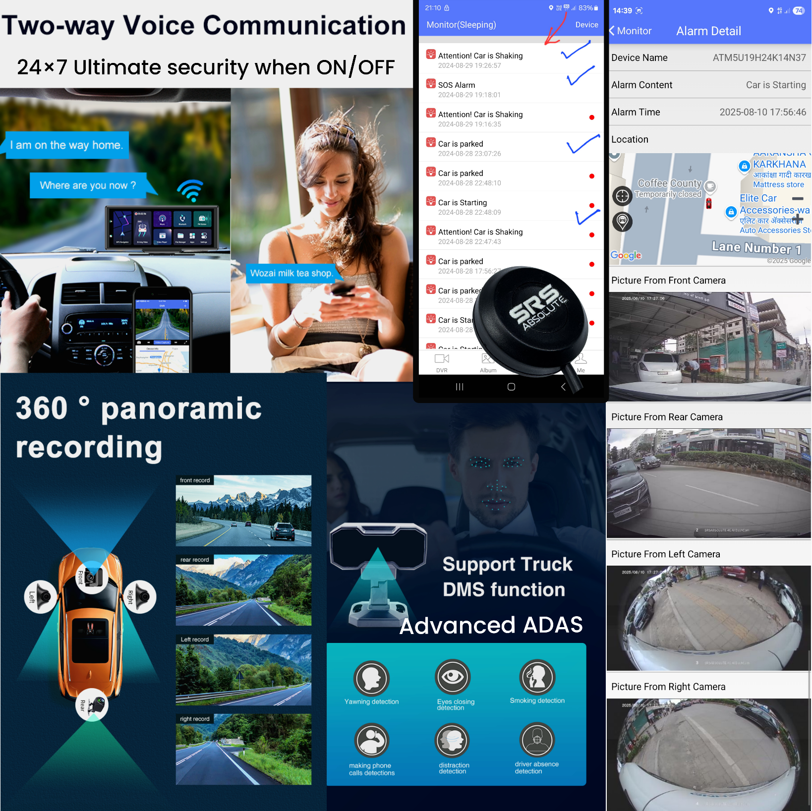- High Quality 4-Camera/4-Cam 360 Simultaneous Recording (AHD)